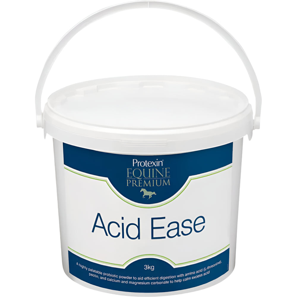 Acid Ease عبارة عن مزيج فريد ومركّز ولذيذ من الألياف عالية الجودة وكربونات الكالسيوم والمغنيسيوم والكاولين والأحماض الأمينية والبروبيوتيك والبريبايوتيك من Protexin. يتم تقديم Acid Ease على شكل مسحوق لذيذ بنكهة الهندباء، وهو مناسب لتهدئة الحموضة الزائدة لدى جميع الخيول والمهر المفطوم.