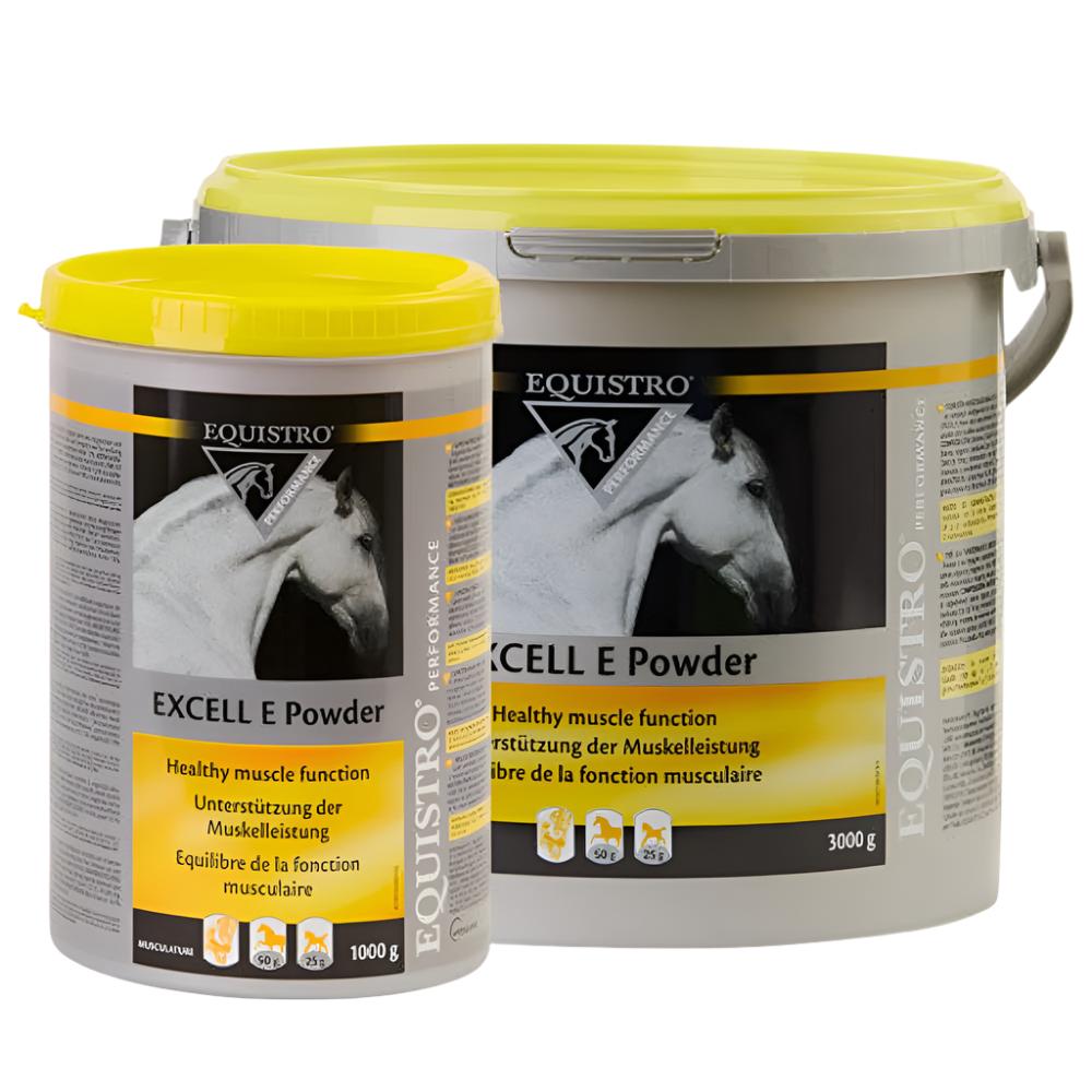 يحتوي مسحوق EXCELL E على فيتامين E والسيلينيوم اللذين يعملان بشكل تآزري كمضادات أكسدة قوية ومزيلات للجذور الحرة. تطلق العضلات التالفة كميات كبيرة من الجذور الحرة، مما يستدعي تناول مكملات مضادات الأكسدة لتحسين تعافي الخيول المصابة.