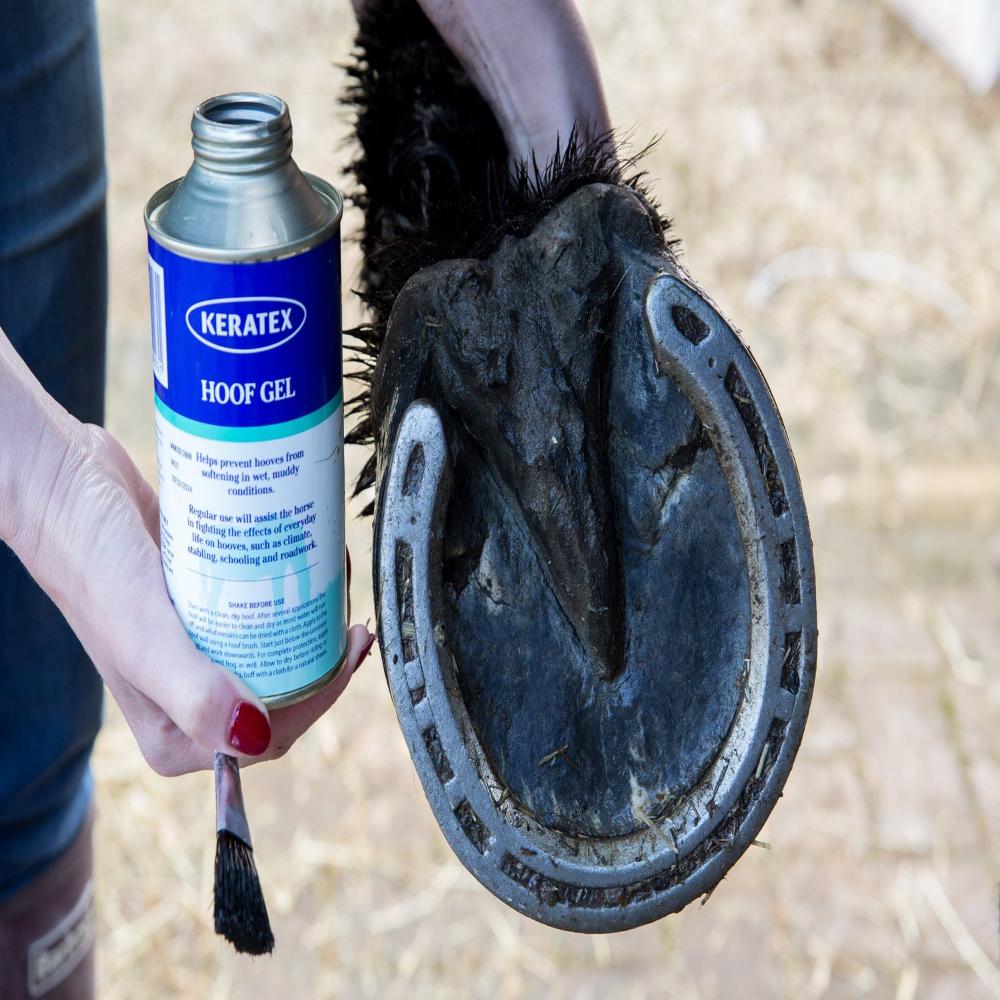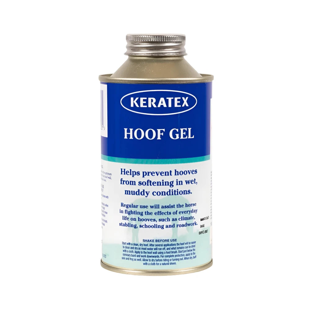 تم تصميم Keratex Hoof Gel للاستخدام في الطقس الرطب، حيث يشكل طبقة مقاومة للماء وجيدة التهوية فوق الحافر، مما يحافظ على حوافر الحصان محكمة الغلق ويساعد في منع تليينها أو انقسامها أو تفتتها في الظروف الرطبة الموحلة. ضع Keratex Hoof Gel على الحافر بالكامل، والجزء السفلي من القدم، والنعل والكعب كل يومين للمساعدة في استعادة جودة وقوة حوافر حصانك. بمجرد امتصاص المنتج في الحوافر، سترى أن الماء يشكل قطرات تتدحرج ببساطة من الحوافر مثل المطر من سترة مشمعة أو الماء من ظهر البطة.
