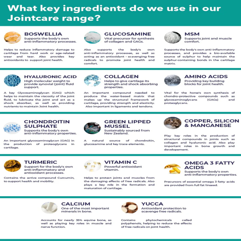 | Hyaluronic Acid | 150 mg | Joint fluid viscosity & lubrication |