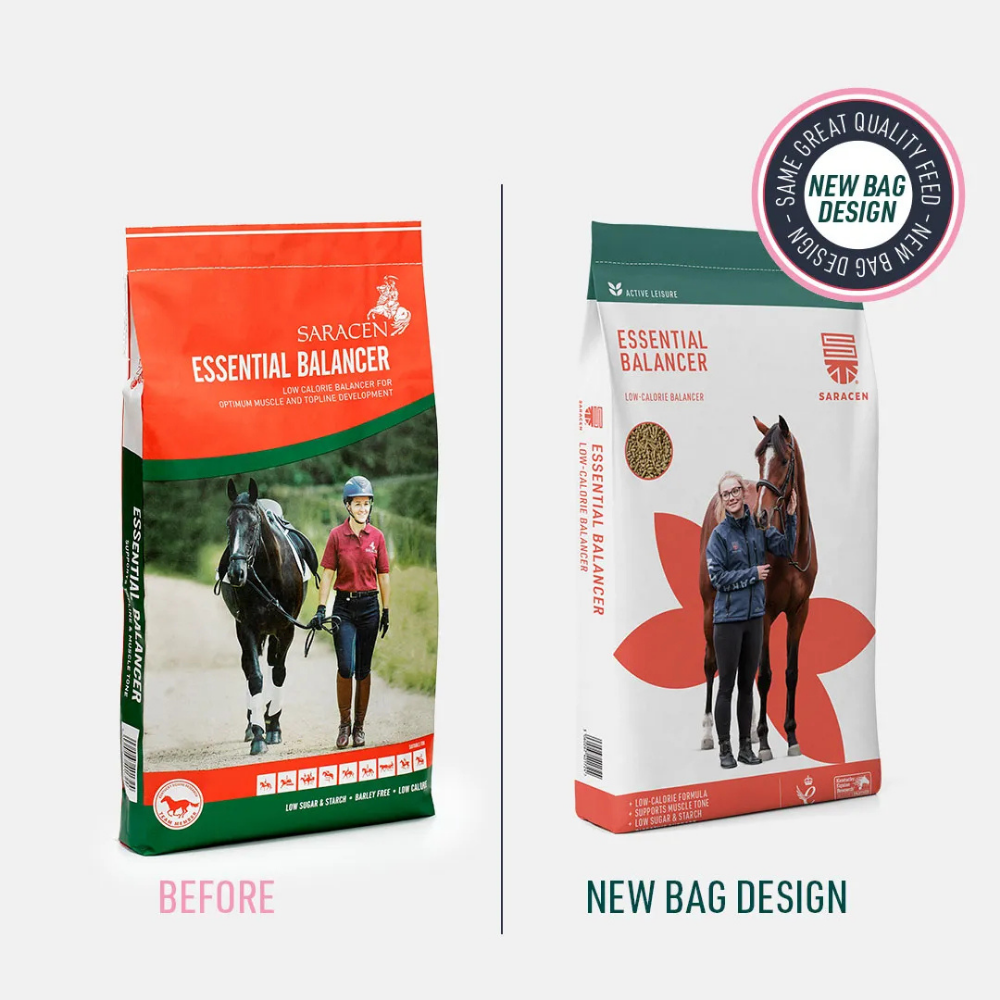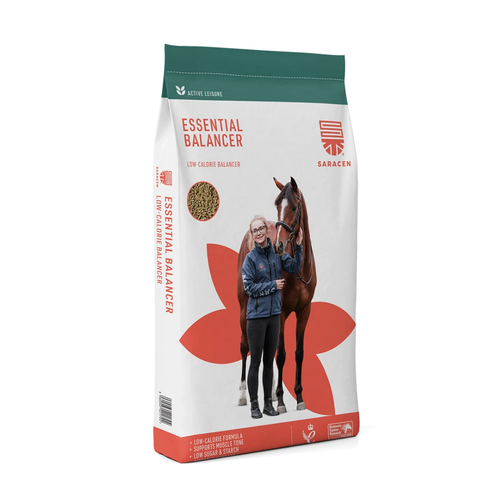 Essential Balancer by Saracen is a cost-effective, low-calorie pelleted feed designed to provide concentrated vitamins, minerals, and high-quality protein for horses and ponies maintained on forage-based diets. This formulation is whole cereal grain–free and low in starch and sugar, making it particularly suitable for good-doers and easy keepers that require careful weight management.