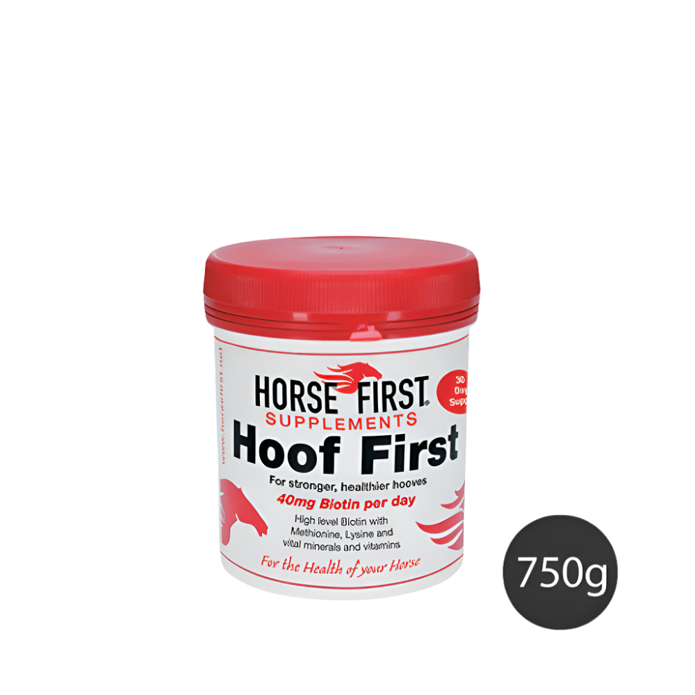 Hoof First unique formula contains high strength Biotin with all the essential vitamins and minerals to produce a healthy hoof. It is well known that Biotin will grow horn but at HORSE FIRST we want to give you more, a strong, healthy hoof with continuous growth. Hoof First grows hooves which are better for your farrier to work with, and fights problems such as thin soles, cracked, chipped or weak hooves, contributing to lost shoes which are costly.
