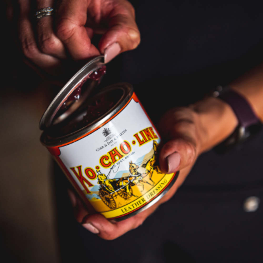 Ko-Cho-Line® is a unique, thick pink grease designed to protect leather from drying and cracking during storage. It also helps maintain stitching integrity and can prevent metal parts from rusting. Ideal for renovating and reviving tired saddlery.