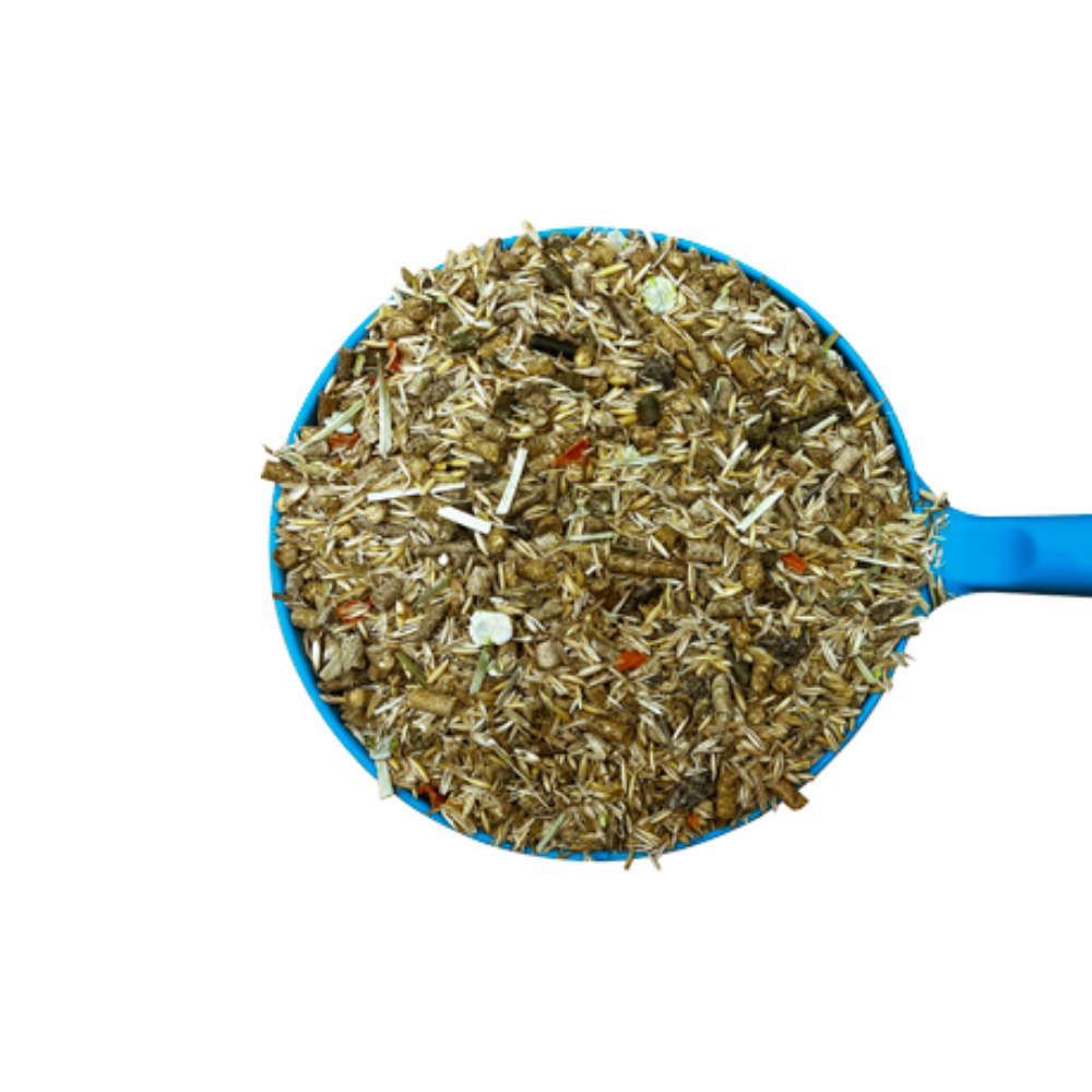 Partially Treated Straw, Oat Hulls, Grass Meal, Soya Hulls (GM), Oatfeed, Sugar Beet Pulp, Wheatfeed, Distillers Dark Grains, Dicalcium Phosphate, Grass, Dried Beet Pulp, Rapeseed Oil, Micro Flaked Peas, Isomaltulose, Nettle, Dried Carrot, Calcium Carbonate, Seaweed Meal, Sodium Chloride, Magnesium Oxide, Monocalcium Phosphate, Natural Plant Blend (Blackcurrant, Kale, Spinach, Beetroot, Rosemary, Rosehip, Pomegranate), Fructose, Mint, Basil.