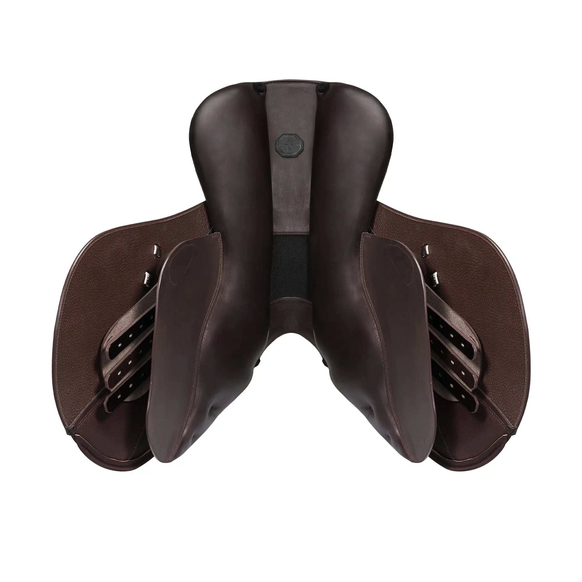 The Rubino MD AS-X saddle features a tree with the revolutionary new AS-X technology, born from the combination of two technologies: the Adaptive System and the X-Technology. The Adaptive System is the only shock-absorbing system that allows the tree axial and lateral bending. A tree that is unique on the market and completely innovative. Thanks to its geometry, X-Technology with injected membranes and the patented Adaptive System, it is able to fully follow the horse’s movements and offer the rider maximum stability. The front part of the saddle is designed to minimise the thickness and provide the rider with a close contact sensation, while the rear part, with its large injected membranes, offers great stability. The design, specifically studied to provide maximum flexibility, allows the horse to flourish its athletic skills. Its medium deep seat version provides the rider a central position. The reduced thickness under the thigh increases the communication between horse and rider. The design of the blocks, which are not stitched at the front, allows the sweatflaps to flex and the panels to follow the horse’s shoulders without restricting its movement. The Rubino MD AS-X saddle adapts to all horse morphologies and rider’s needs, thanks to its five different panels options: LPF (integrated, not integrated and FSF applied) and latex (integrated and not integrated).